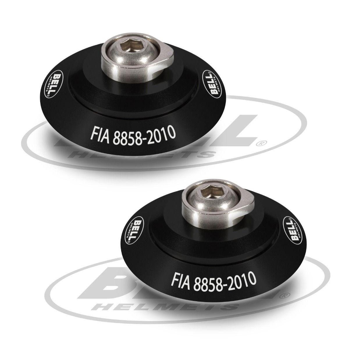 Clips profesionales para HANS con base de aluminio. Para usar con el dispositivo Hans, Bell Racing vende y puede instalar los anclajes a pedido de los clientes en cascos modelo Bell.